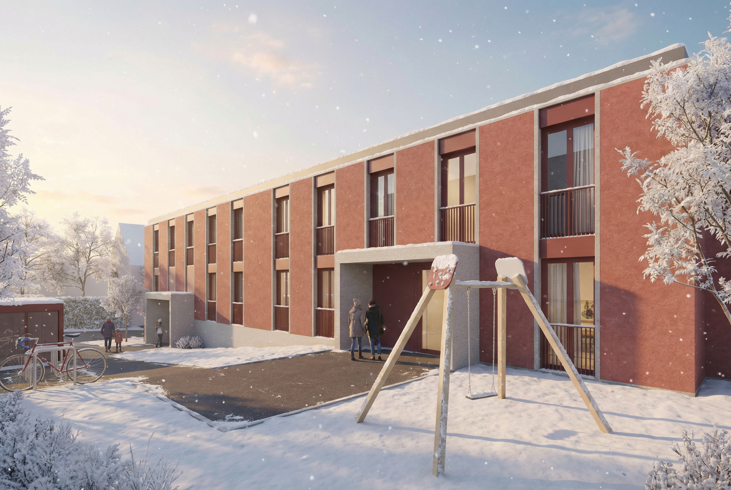 Las imágenes incluyen tanto vistas exteriores como interiores, poniendo en valor la distribución de los espacios, la relación con el entorno urbano y natural de Lausanne, así como la cuidada selección de materiales. Gracias al uso de avanzadas técnicas de renderizado, se ha conseguido una representación fiel del proyecto, con especial atención a la iluminación, las texturas y la atmósfera general.