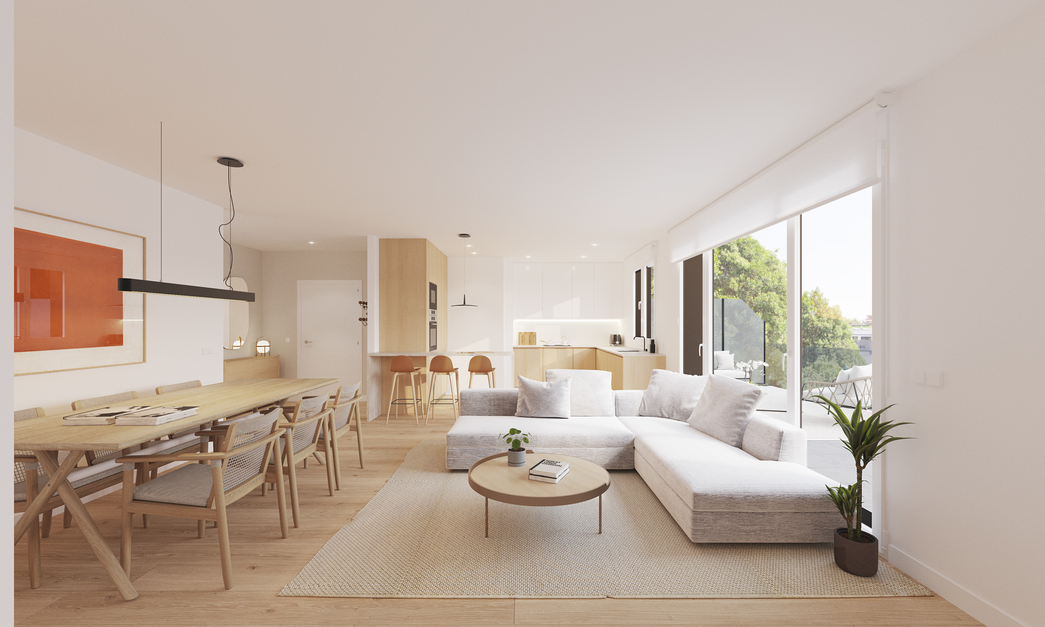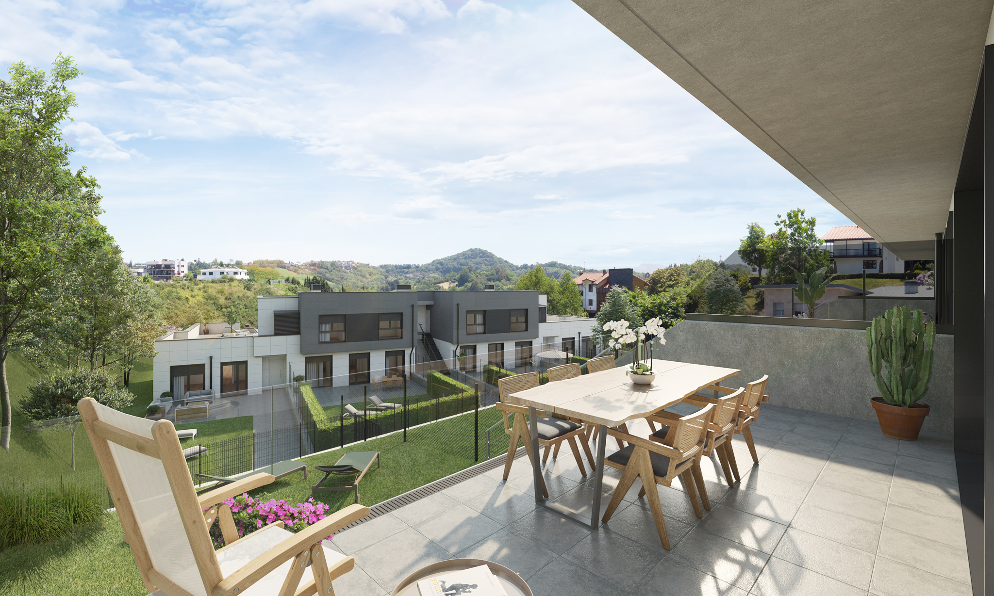Las infografías 3D permiten descubrir el residencial antes de su construcción, ofreciendo una visión completa de los espacios exteriores e interiores. A través de las imágenes es posible comprender la distribución de las viviendas, la relación con el entorno y la atmósfera de cada espacio, ayudando a imaginar la vida cotidiana en el conjunto residencial. Cada escena está cuidada para reflejar sensaciones de luz, confort y equilibrio.